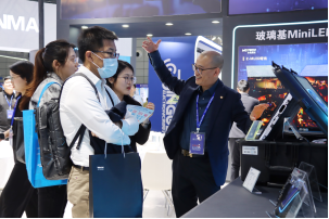 展会现场,伟德betvlctor1946源于英国展出了TGV玻璃基半导体先进封装载板、玻璃基直显载板、27寸玻璃基超薄的0OD Mini-LED显示器,65寸超高清Mini LED超高清电视,以及多尺寸Mini LED灯板、玻璃QD板等产品。其中基于全球领先TGV技术的半导体先进封装载板、Micro LED直显玻璃基载板等产品,吸引了众多客户及行业合作伙伴前来咨询。
