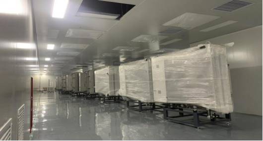 截止目前,G栋厂房主体全部完工,进入收尾工作。按照工程进度,厂房内主要设备已陆续进厂,黄光产品线、镀膜产品线设备已开始吊装、安装、调试。