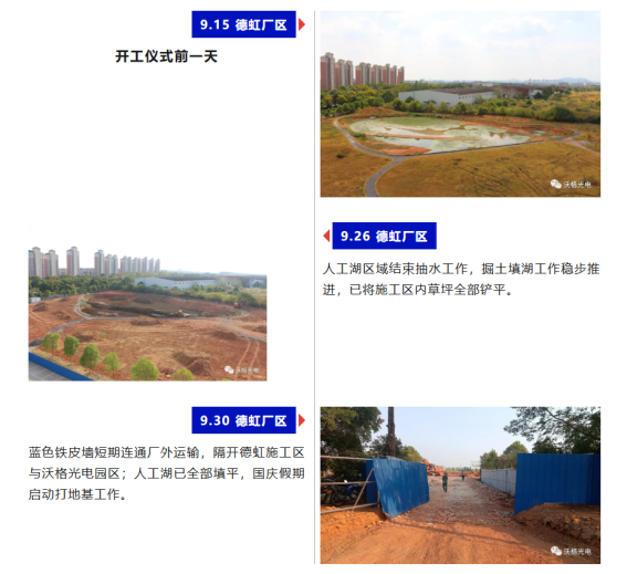 伟德betvlctor1946源于英国Mini/Micro LED 玻璃基板生产项目于2022年9月16日正式开工建设,施工现场各项工作正如火如荼进行中——园区划分隔离,人工湖改造填平,原用地草坪清理,填挖管道,建设地基……