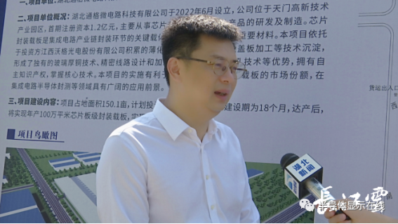6月17日,两个项目公司均已注册落户。湖北通格微电路科技有限公司主要从事芯片封装载板的研发与制造,项目建设期18个月,达产年后,将实现年产100万平米芯片板级封装载板。