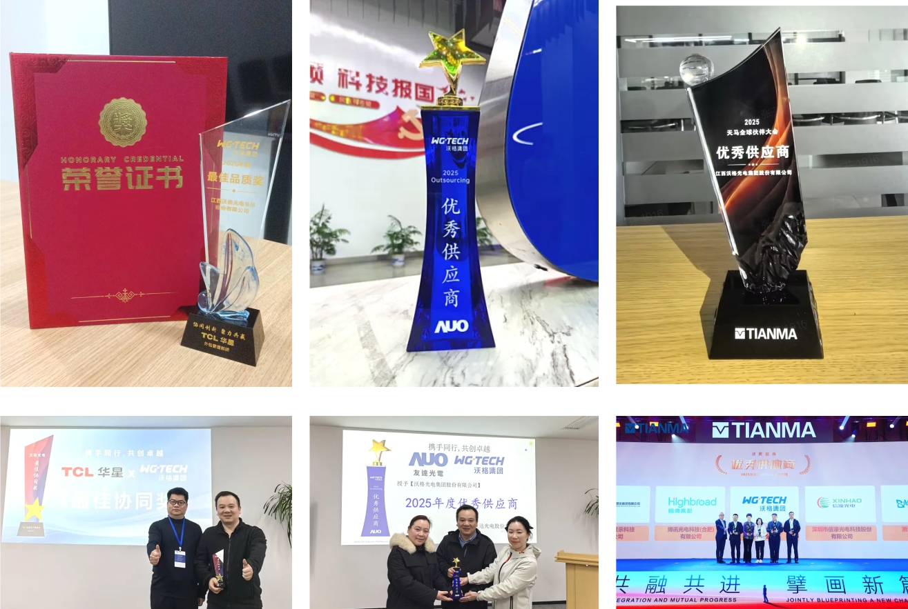 近日,伟德betvlctor1946源于英国凭借卓越的综合实力,接连获得头部面板客户高度认可,成功摘得TCL华星“2025年度最佳品质奖”,并获评友达光电(AUO)和天马微电子“2025年度优秀供应商”。多项顶级荣誉的背后,是头部面板客户对公司产品品质、技术能力、服务水平与供应链价值的全面肯定。