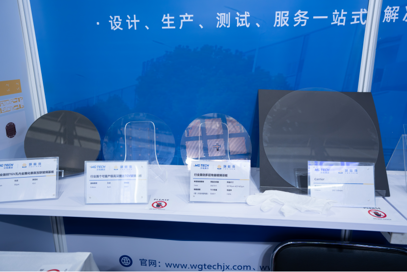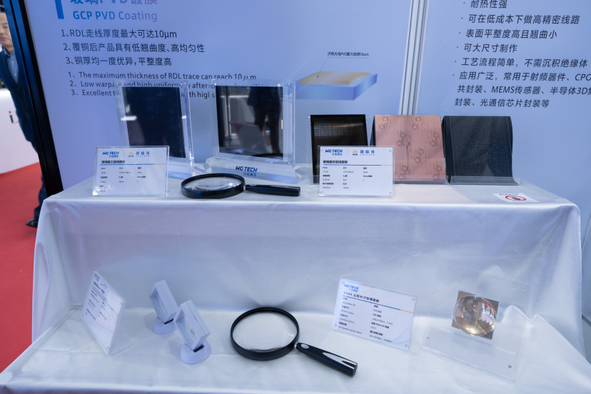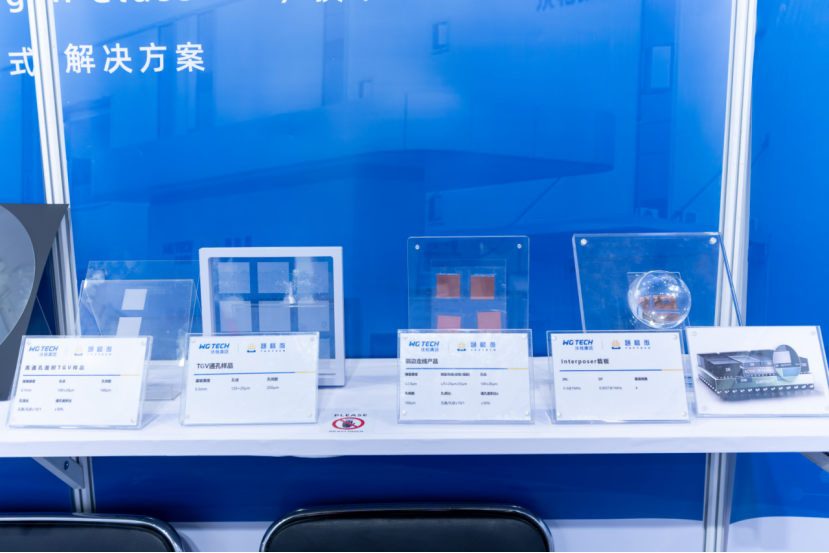 通格微集中展示了基于自主核心GCP(玻璃线路板)技术的多类型TGV玻璃基产品,涵盖三层线路板、微流控载板、MIP封装载板、Micro LED直显模组、多层堆叠玻璃基板、侧边走线玻璃基板、四层线路interposer玻璃基板等品类,涉及半导体先进封装、通信、微流控、新型显示等应用领域。其中,首次亮相的可量产超高深宽比TGV玻璃基板作为通格微最新技术进展的代表,吸引了众多行业专业人士的高度关注。